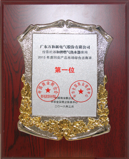 《全國大型零售企業(yè)暨消費品市場2015年度監(jiān)測報告》顯示,2015年燃氣熱水器銷售306344臺,其中萬和燃氣熱水器市場占有率11.12%,市場銷售份額16%,連續(xù)十二年市場綜合占有率第一。
